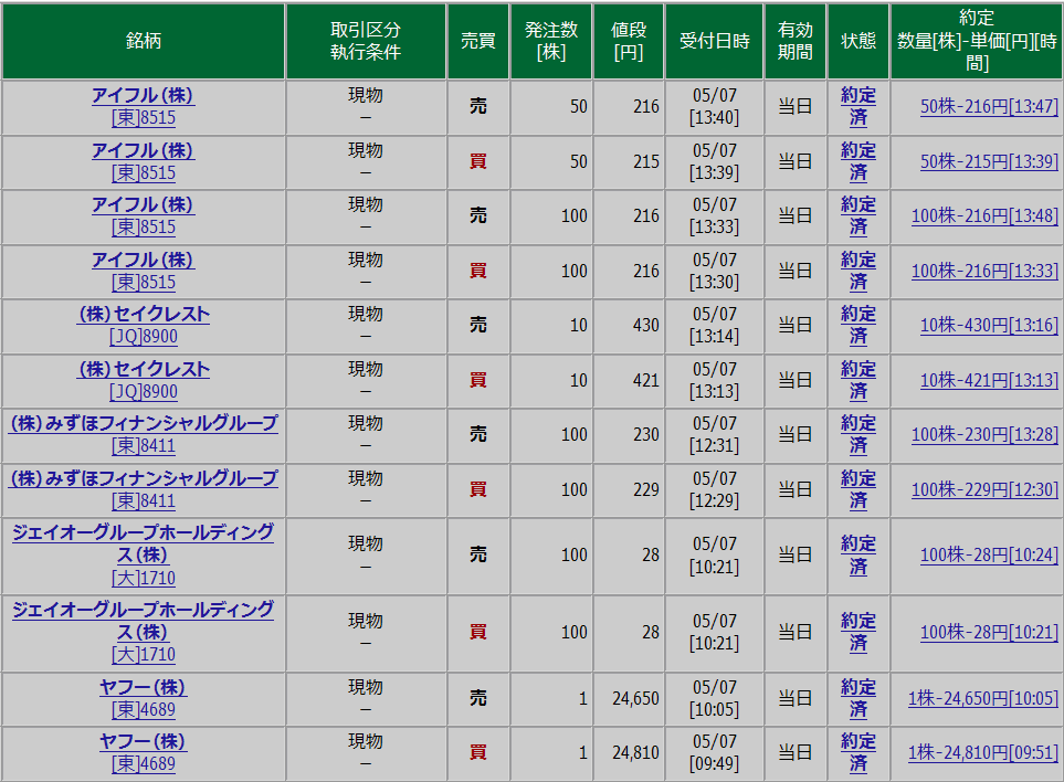 大型連休明けての取引は初めての経験、難しかったです。