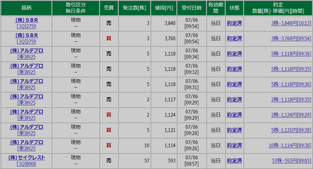 本日は前場のみの取引でした。