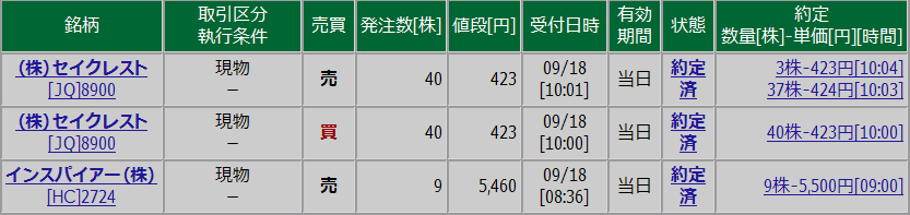 【09/09/18株取引結果】+397円
